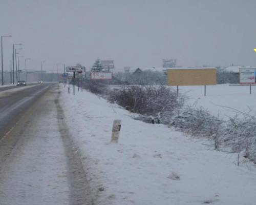 výjazd z Trenčína, priemyselná zóna Laugarício, ľavá strana cesty
