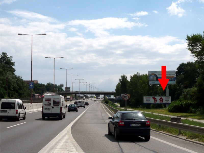 ťah z centra do Dúbravky, pri nadchode pre chodcov, kolmo, vľavo
